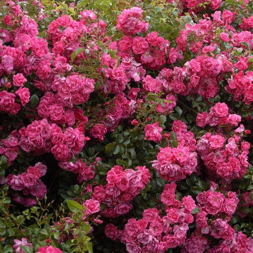 Róża okrywowa Palmengarten Frankfurt to wyjątkowo dekoracyjna i bardzo zdrowa odmiana o intensywnych, jasno-różowych kwiatach, które pojawiają się w dużych ilościach od początku lata aż do jesieni. Kwiaty są półpełne, średniej wielkości i tworzą efektowne kwiatostany na tle świeżych, ciemnozielonych liści, co sprawia, że krzew prezentuje się niezwykle atrakcyjnie przez cały sezon.
