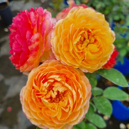 Rosomane Janon to zachwycająca róża parkowa o wielobarwnych kwiatach, które przyciągają wzrok intensywną grą kolorów – od kremowożółtego, przez łososiowy i różowy, aż po głęboki koralowy odcień. Kwiaty są duże (ok. 12 cm średnicy), pełne i składają się z ponad 50 delikatnych płatków. Ich zapach jest świeży, owocowy, z wyczuwalnymi nutami wanilii, limonki i cytrusów – szczególnie intensywny w ciepłe, słoneczne dni.