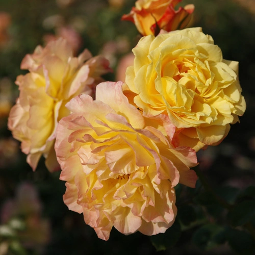 Róża Moonlight zachwyca miękką kolorystyką i delikatną formą kwiatów. Jej duże, pełne lub półpełne kwiaty rozwijają się w ciepłych odcieniach jasnej żółci, kremu i moreli, często z delikatnym różowym muśnięciem na brzegach płatków. W miarę przekwitania barwy łagodnie jaśnieją, nadając kwiatom lekko nostalgiczny wygląd.
