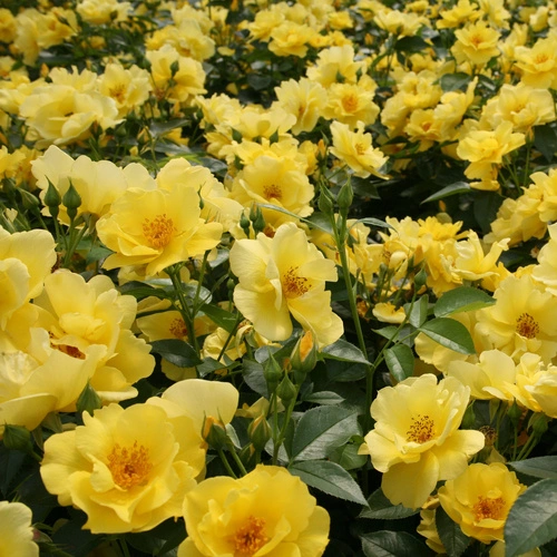 Róża rabatowa Lemon Fizz to pełna energi odmiana, która przyciąga wzrok jasnymi, cytrynowo-żółtymi kwiatami o świeżym, radosnym odcieniu. Kwiaty mają półpełną formę, średnią wielkość i są zebrane w liczne grona, co sprawia, że krzew przez cały sezon wygląda bardzo efektownie.