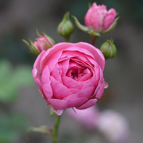 Jej cechą charakterystyczną są liczne, drobne, kuliste kwiaty o średnicy 4-6 cm, intensywnie różowe, często zebrane w efektowne grona.