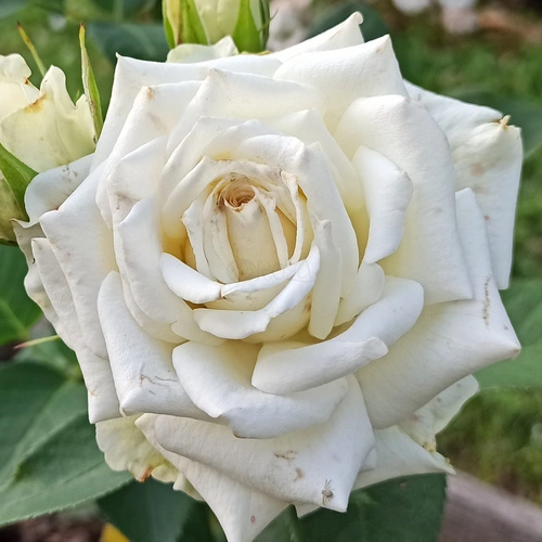 Isle of White to kompaktowa róża wielkokwiatowa z kolekcji Holiday Island. Dorasta na wysokość około 80 cm, tworzy zwarty krzew. Kwiaty czysto białe i lekko pachnące. Liście z delikatnym połyskiem. Odmiana ta wykazuję dobrą odporność na choroby grzybowe. Powtarza kwitnienie od wiosny do jesieni. Polecana na kwiat cięty.