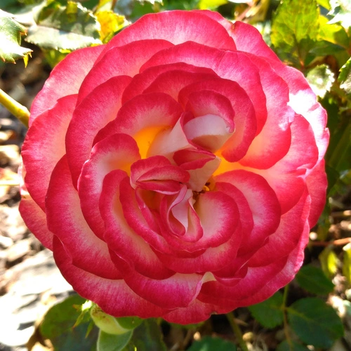 Mauritius Holiday Island to kompaktowa róża wielkokwiatowa. Kwiaty kremowe z wiśniowo-czerwonym brzegiem - duże i pełne. Liście ciemnozielone i błyszczące - charakteryzują się dobrą odpornością na choroby. Powtarza kwitnienie przez cały sezon. Polecana do donic.