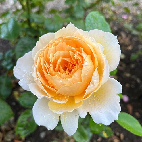 Róża Patrick Devedjian zachwyca dużymi kwiatami w ciepłych odcieniach kremu i moreli. Jej zapach jest intensywny i urzekający – łączy klasyczną nutę róży z delikatnym aromatem konwalii, tworząc elegancką i bardzo przyjemną kompozycję.