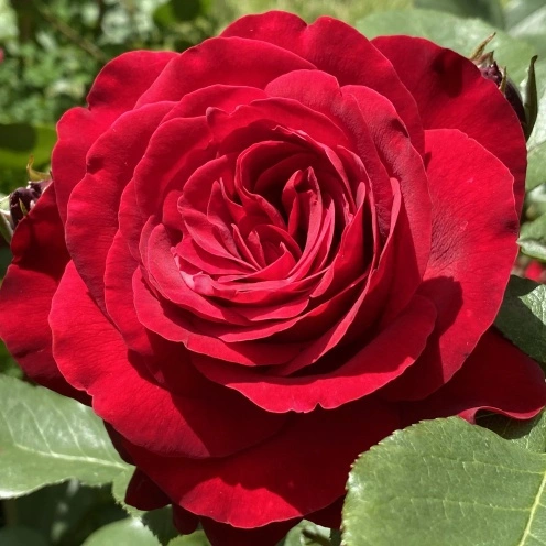 Róża wielkokwiatowa, o dużych kwiatach i wyrazistej czerwonej barwie. Pachnąca i obficie kwitnąca.